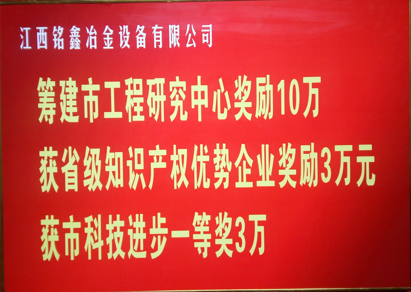 祝賀銘鑫冶金設(shè)備有限公司被評選為2016優(yōu)秀企業(yè)家,并獲得籌建市工程研究中心獎勵10萬元,獲得省級知識產(chǎn)權(quán)優(yōu)勢企業(yè)獎勵3萬元,獲得市科技進(jìn)步一等獎3萬元。