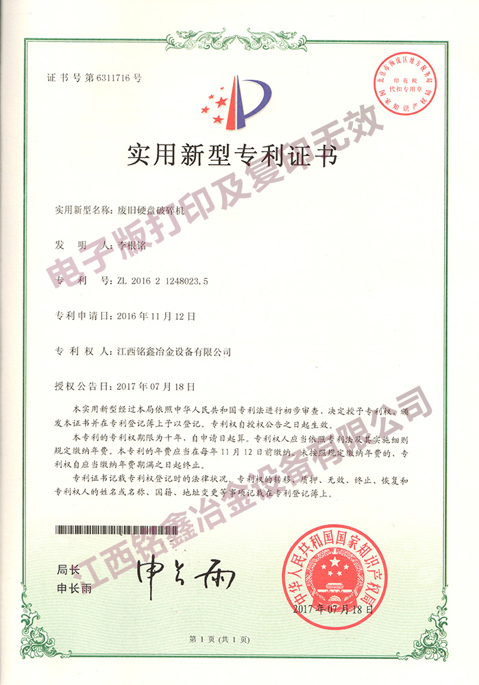 廢舊電路板干式回收成套設(shè)備- ZL20150779760.7