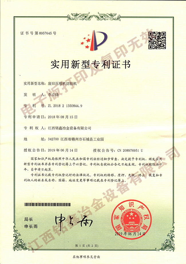 廢舊壓縮機(jī)切割機(jī)-ZL201821350844.9